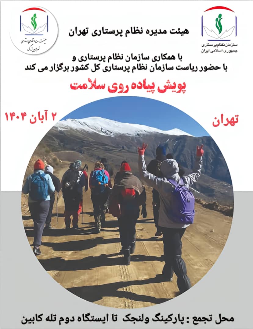 پویش پیادهروی سلامت پرستاران روز جمعه ۲ آبان ۱۴۰۴، ساعت ۶ صبح از پارکینگ ولنجک توچال آغاز میشود و تا ایستگاه ۲ تله کابین توچال ادامه خواهد داشت. همراه داشتن بطری آب، کفش، کلاه، لباس ورزشی مناسب و گرم و کوله پشتی سبک در این پیادهروی ضروری است.